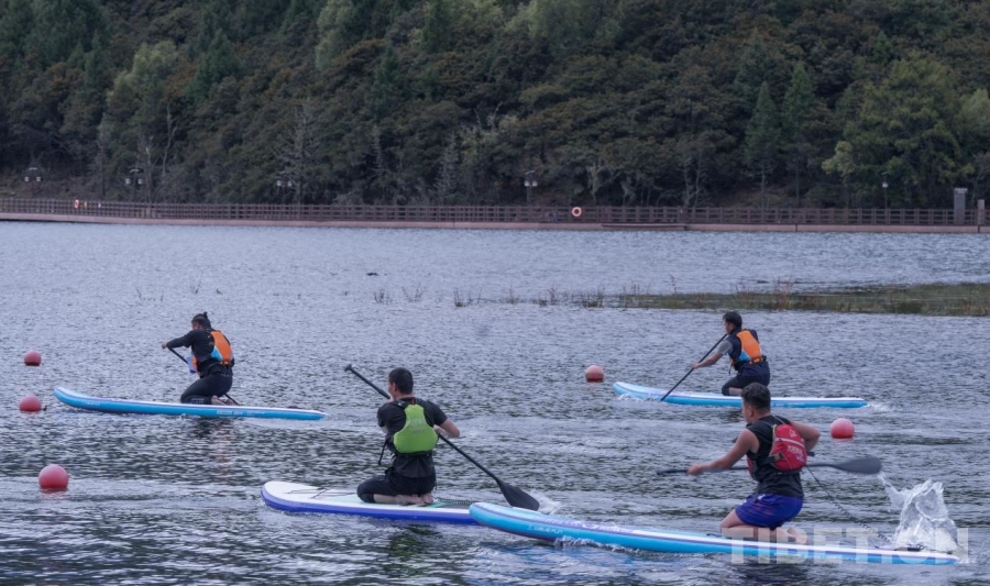 中國西藏網(wǎng)訊 9月26日,2024年“綠水青山”中國休閑運(yùn)動挑戰(zhàn)賽(西藏林芝站)在西藏林芝魯朗國際旅游小鎮(zhèn)開賽。來自全國各地的百余名體育健兒及愛好者相聚在扎塘魯錯湖畔,共同在藍(lán)天白云下、綠水青山間揮槳競逐。