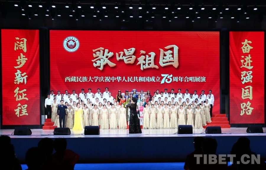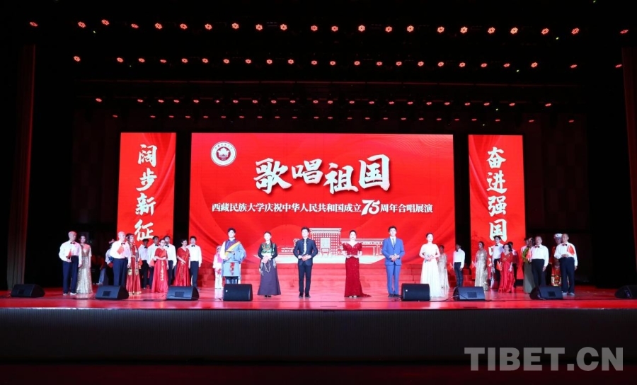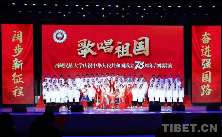 中國西藏網(wǎng)訊 紅旗獵獵,歌聲嘹亮。在喜迎中華人民共和國成立75周年之際,9月28日,一場以“歌唱祖國”為主題的合唱展演在西藏民族大學文體館舉行。