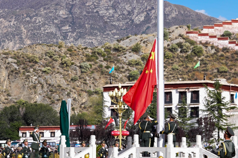 中國西藏網(wǎng)訊 10月1日上午10時(shí),西藏自治區(qū)慶祝中華人民共和國成立75周年“升國旗、唱國歌”儀式在布達(dá)拉宮廣場舉行。