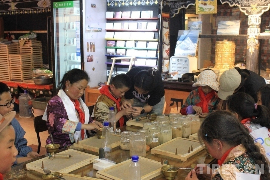 圖為研學游學生在工作人員的指導(dǎo)下制作藏香 攝影:蔣馨悅