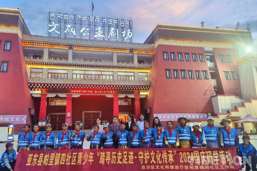 圖為研學游成員在文成公主劇場前合影 攝影:蔣馨悅