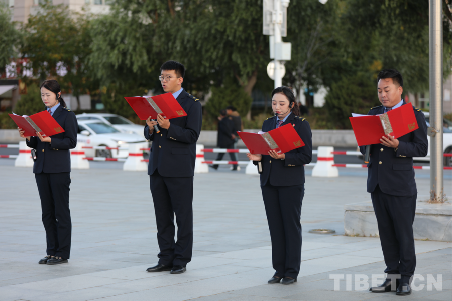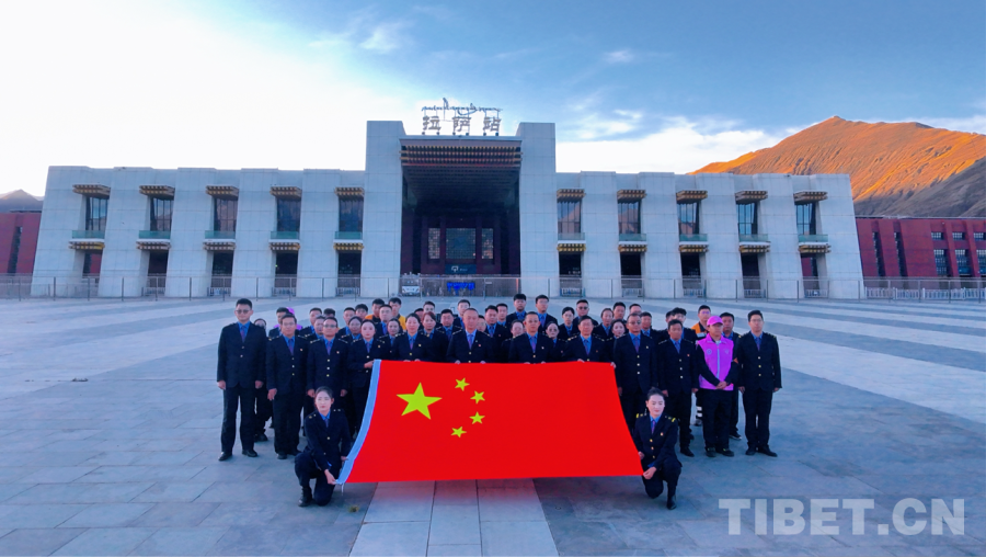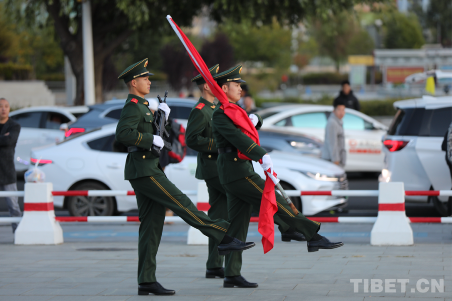 中國西藏網(wǎng)訊 在新中國成立75周年這一榮耀時刻,拉薩火車站舉行了一場莊嚴而隆重的升國旗儀式。10月1日上午8時整,雄渾的國歌聲奏響,駐站武警儀仗隊邁著整齊劃一的步伐,護衛(wèi)著五星紅旗走向國旗基座。在火車站干部職工的凝視下,五星紅旗冉冉升起,那是祖國繁榮昌盛的象征。