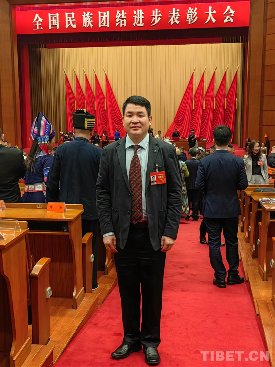 圖為丁玉珂以“全國民族團結(jié)進步模范個人”身份出席全國民族團結(jié)進步表彰大會 受訪者供圖