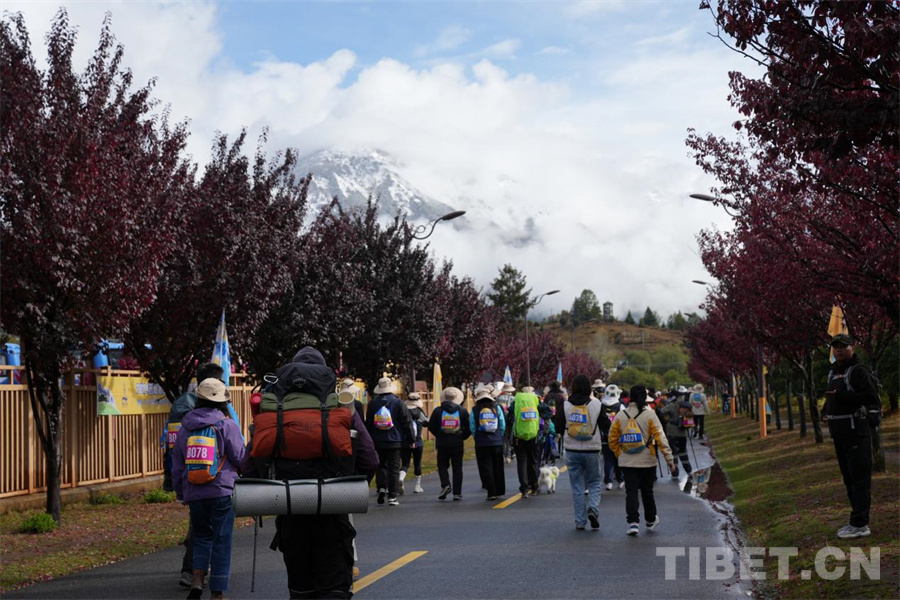 圖為來(lái)自五湖四海的徒步者正興致昂揚(yáng)地在巴松措景區(qū)徒步 攝影:邊子捷