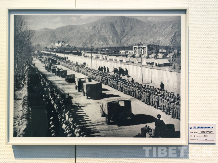 圖為第17屆西藏珠穆朗瑪攝影大展展出的藍(lán)志貴于1954年12月所拍攝的《車隊(duì)第一次開到拉薩》 翻拍:王淑
