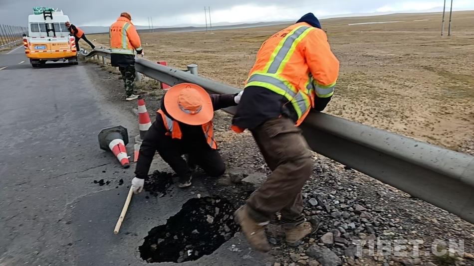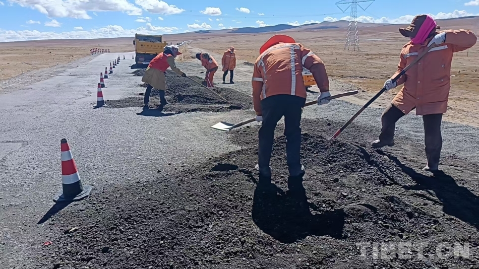 受低溫限制,唐古拉山路段的油路養(yǎng)護(hù)季節(jié)性非常強(qiáng),每年的5至10月是養(yǎng)護(hù)的黃金時(shí)間。為了能在有限的時(shí)間內(nèi)更好地養(yǎng)好公路,每年這個(gè)季節(jié),我和工友們都要在凌晨四五點(diǎn)出發(fā),一絲不茍地進(jìn)行日常巡查,對(duì)破損的路面進(jìn)行及時(shí)修補(bǔ)。每天工作超過十個(gè)小時(shí),餓了吃些糌粑,渴了喝點(diǎn)酥油茶,累了就靠在車上休息一會(huì)兒。春天,我們處理路面裂縫;夏天,我們清理塌方;冬天,我們與冰雪戰(zhàn)斗。我們?nèi)硇耐度耄们啻汉秃顾刈o(hù)這條公路,確保這條至關(guān)重要的運(yùn)輸動(dòng)脈能夠抵御極端惡劣氣候的考驗(yàn),讓每一輛過往車輛都能安全順暢通行。