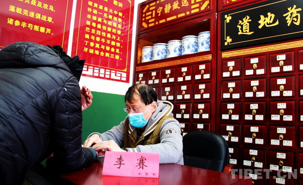 圖為北京大學(xué)第三醫(yī)院中醫(yī)科主治醫(yī)師李賽正在為患者診脈 攝影:劉莉