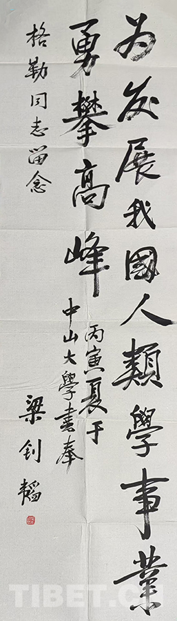 這次我給中大捐贈了珍藏已久的梁先生為我題寫的畢業(yè)贈言。他要我為發(fā)展我國人類學事業(yè)勇攀高峰,我知道以我的能力和年齡,今生不一定能攀登高峰,但我依然在努力,依然在奮斗。近二十多年來,我在一些大專院校兼任博士生導師,為培養(yǎng)中國馬克思主義藏學家和人類學家而辛勤耕耘,尤其是2011年從行政崗位退下來以后,我已經全身心地投入到培養(yǎng)中國藏學和人類學接班人的教學工作中,不辜負梁釗韜導師的贈言和中大領導以及人類學老師們期望,為中國藏學和人類學的發(fā)展發(fā)揮余熱,我樂此不疲。至少我要對得起榮獲的兩個“第一”的光環(huán)吧。(中國西藏網 文/格勒 圖片均為作者提供)