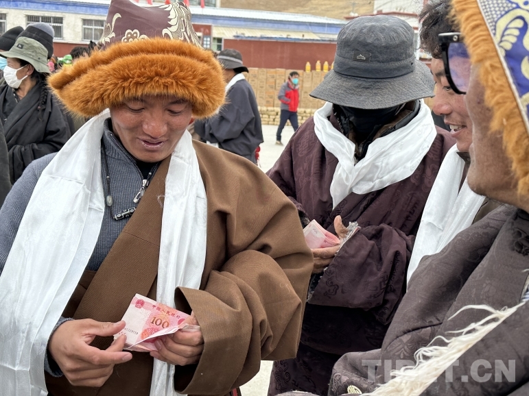 圖為藏比鄉(xiāng)美巴爾村合作社分紅現(xiàn)場(chǎng)每戶人家分紅1500元