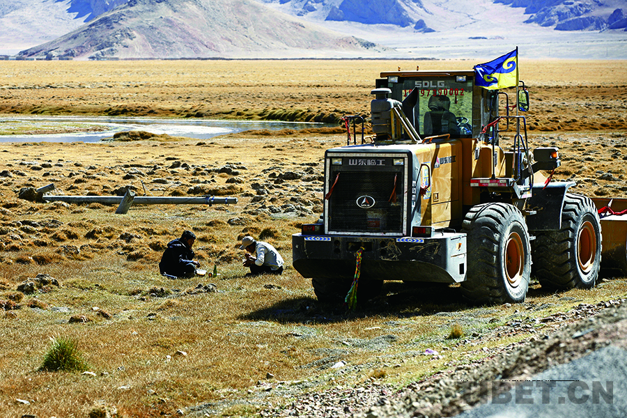 我們沿著349國道環(huán)湖而行,在白地村路段遇到赤列、索朗多吉、白瑪赤列、巴桑頓珠、次仁倉姆和嘎桑正在忙碌著。