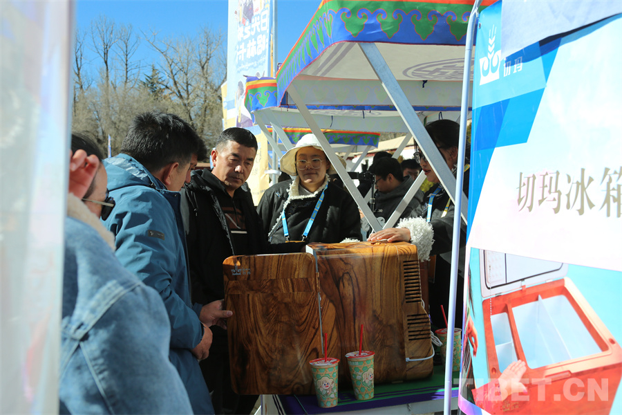 圖為市民游客在集市了解和選購切瑪冰箱。攝影:德吉卓瑪