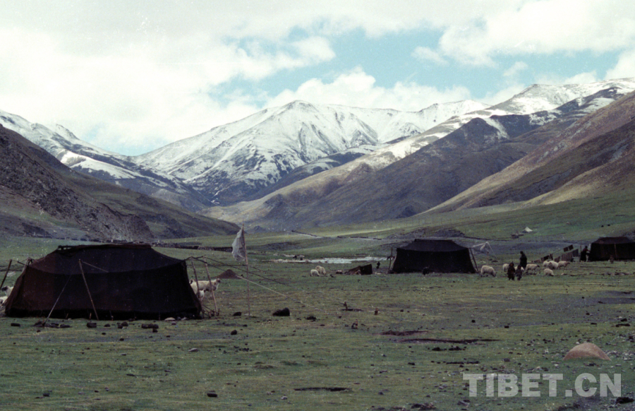 圖為藏北牧民過(guò)去游牧所居住的黑色牦牛毛帳篷(唐召明2001年攝)