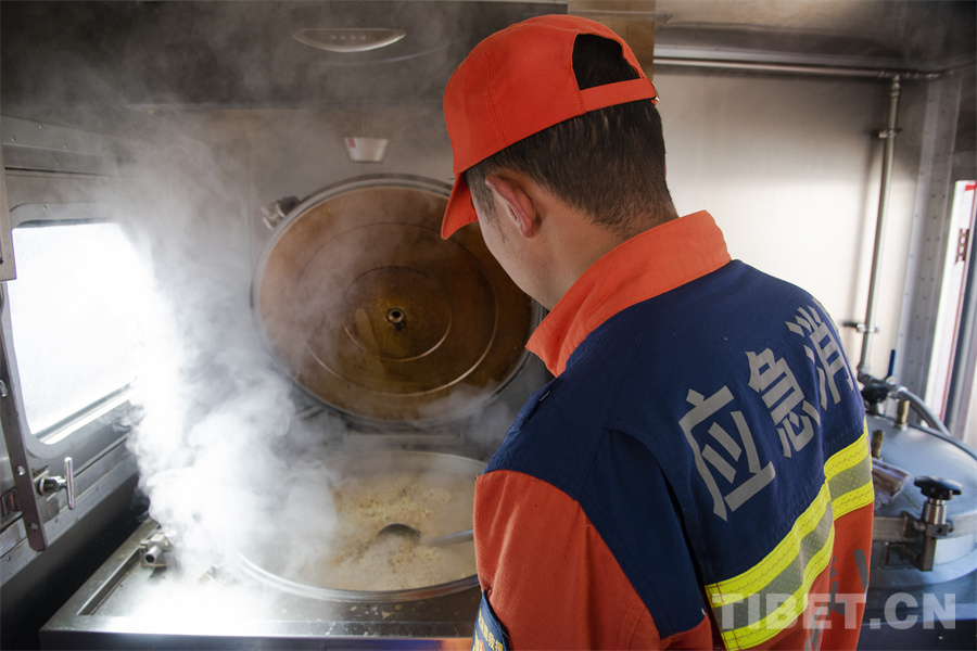 圖為山南市消防救援支隊消防員正在為受災(zāi)群眾準備熱餐 攝影:趙振宇