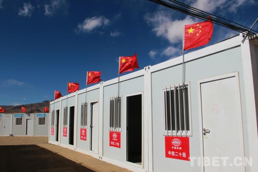 圖為工作人員正在長所鄉(xiāng)森嘎村卸新運(yùn)到的板房 攝影:劉莉