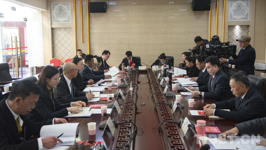 圖為政協(xié)第十二屆西藏自治區(qū)委員會第三次會議新聞出版和社會科學(xué)界委員小組討論會現(xiàn)場(攝于1月18日)攝影:趙振宇
