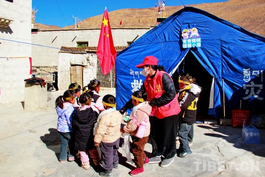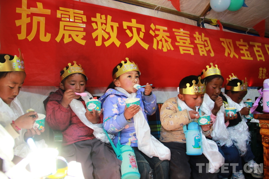 中國(guó)西藏網(wǎng)訊 午后,陽(yáng)光明媚,西藏自治區(qū)日喀則市定結(jié)縣江嘎鎮(zhèn)榮貢村村民旦增點(diǎn)旦家院子里的臨時(shí)帳篷里傳出陣陣孩子們歡樂(lè)的笑聲歌聲。1月18日,旦增點(diǎn)旦的雙胞胎寶寶迎來(lái)百天,溫馨的“情暖震后帳篷,共賀雙寶百日”活動(dòng)在這里舉辦。
