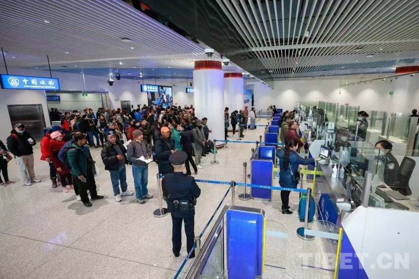 圖為拉薩至尼泊爾加德滿都國際航線正式復航通關 攝影:蔣美靈