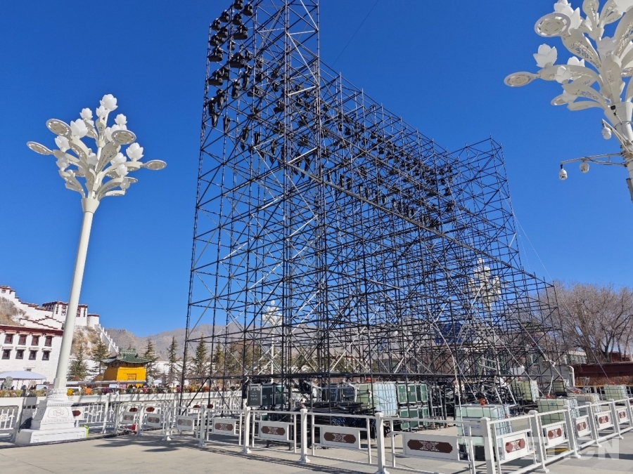 圖為布達(dá)拉宮廣場的春晚分會場布置現(xiàn)場 攝影:趙婧茹