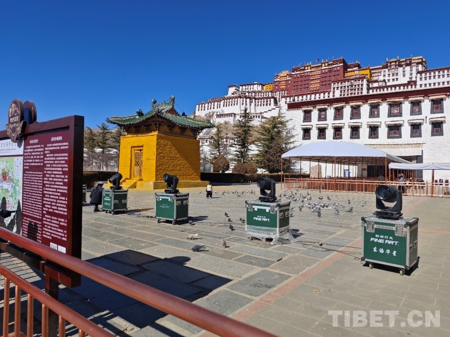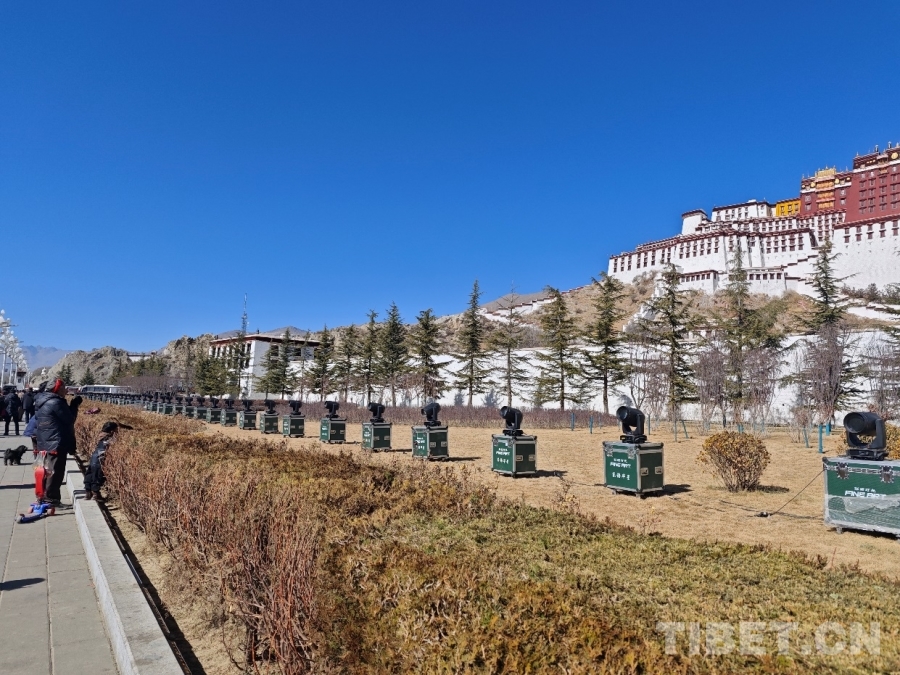 圖為布達(dá)拉宮前的燈光設(shè)備 攝影:趙婧茹