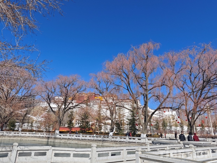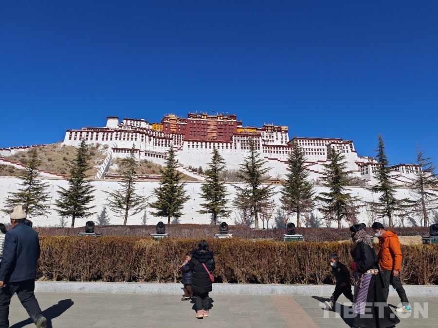 圖為在布達(dá)拉宮前行走的人們 攝影:趙婧茹
