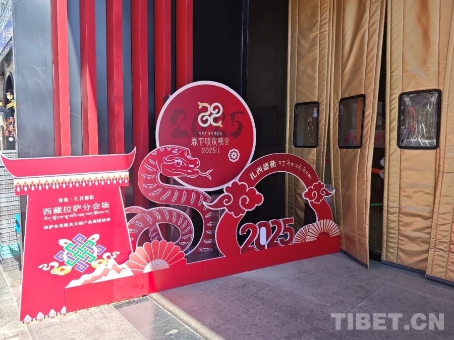 圖為拉薩某商場門口擺放的春晚標(biāo)識牌 攝影:趙婧茹