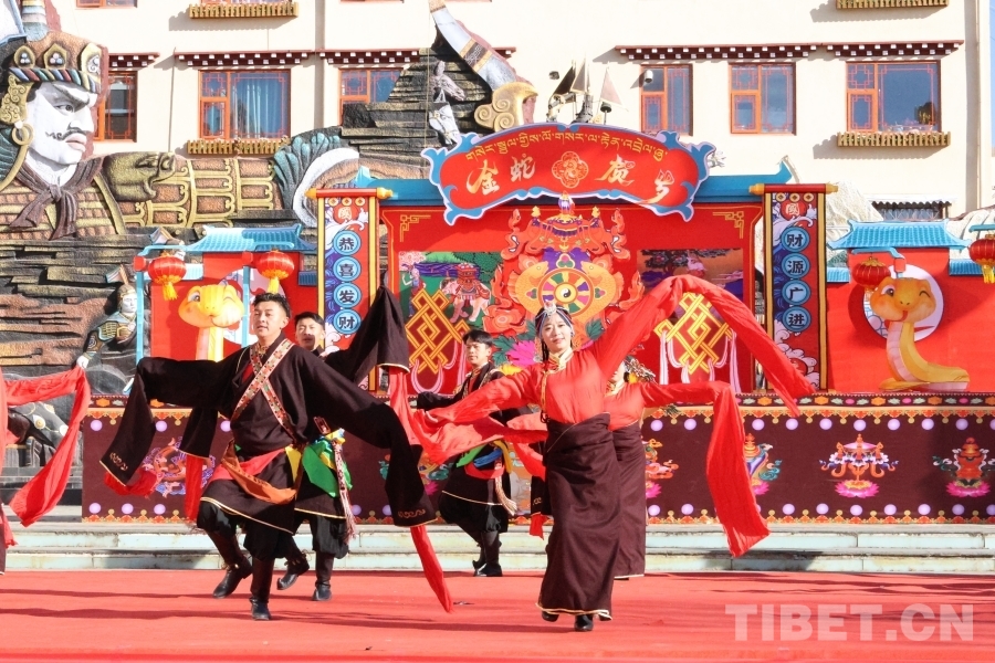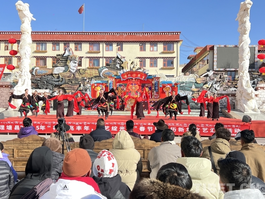 中國(guó)西藏網(wǎng)訊 1月30日,四川省甘孜藏族自治州理塘縣以“春到萬(wàn)家·感恩奮進(jìn)”為主題,在新時(shí)代文明實(shí)踐廣場(chǎng)舉辦春節(jié)、藏歷新年文藝匯演,吸引了上千居民群眾“趕場(chǎng)”觀(guān)看。