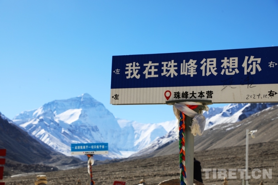 在珠峰大本營(yíng),看萬(wàn)仞雪白聳入無(wú)暇湛藍(lán)。