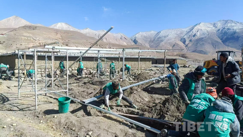 圖為定日縣長(zhǎng)所鄉(xiāng)嘎旦村群眾通過以工代賑方式參與村集體畜圈的修建 圖片由受訪者提供