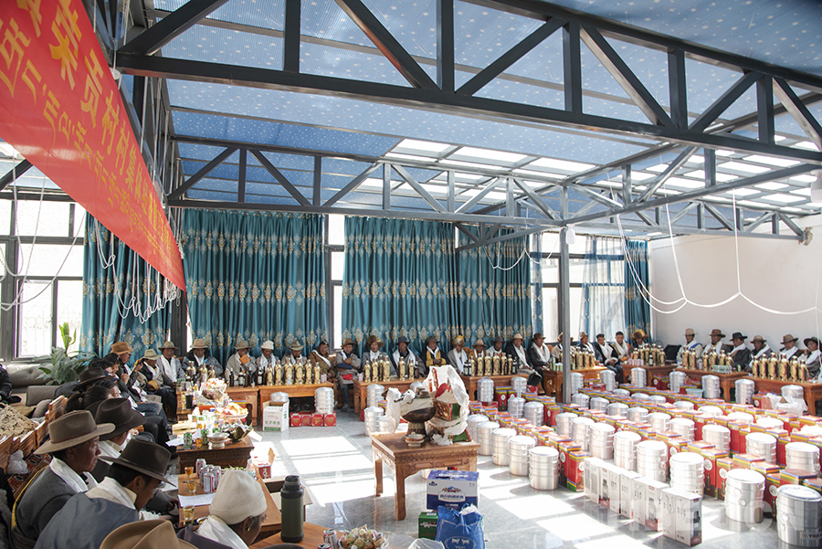 圖為定結(jié)縣江嘎鎮(zhèn)榮貢村村集體經(jīng)濟(jì)分紅儀式現(xiàn)場(chǎng) 攝影:趙振宇