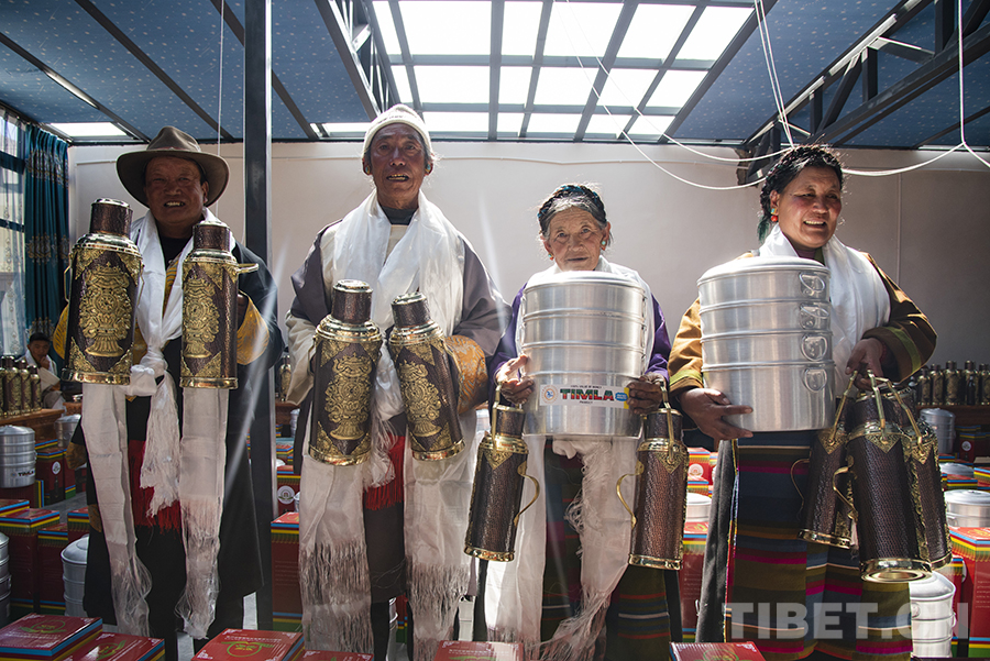 “因受地震的影響,今年的分紅儀式與以往相比簡(jiǎn)單一些。我們村兩委經(jīng)過(guò)商議,決定用今年的村集體收入為每戶購(gòu)置多功能蒸鍋、銅壺等作為‘分紅’。一方面,因?yàn)榇蠹椰F(xiàn)在都在安置板房里生活,這些物品對(duì)于村民來(lái)說(shuō)實(shí)用性更強(qiáng);另一方面,銅壺也有一定的裝飾作用,為村民簡(jiǎn)單的板房?jī)?nèi)增添了一份像樣的‘家具’?!贝妩h支部書記旺加布說(shuō)。