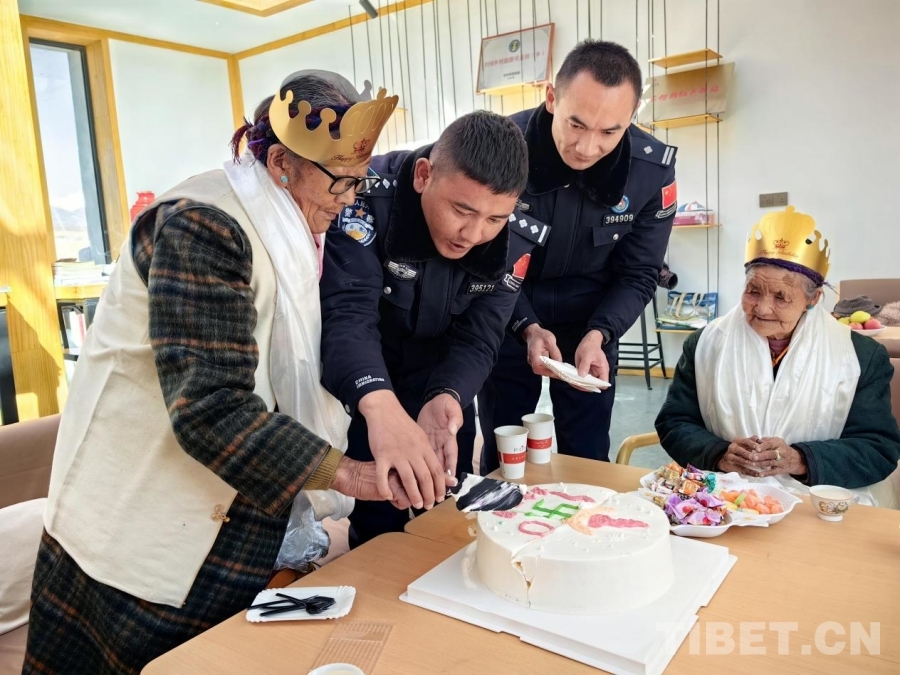 活動中,警民攜手為老人們精心準備了一場慶祝派對,邊防民警、社區(qū)兩委班子成員、駐村工作隊隊員為老人獻上祝福的歌曲,定做精美的蛋糕,穿上代表高壽的藏式服裝等,并與老人們嘮家常,傾聽他們的生活故事和需求?!?/span>