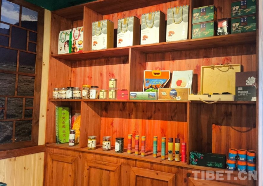 圖為林芝米林市南伊溝紅色小牧屋內(nèi)展示的西藏特產(chǎn)。攝影:趙釗