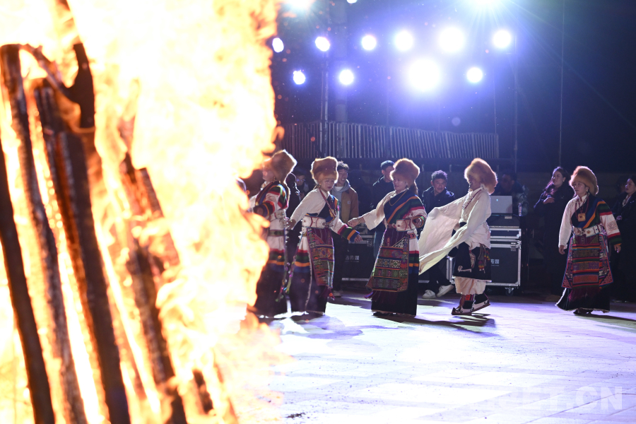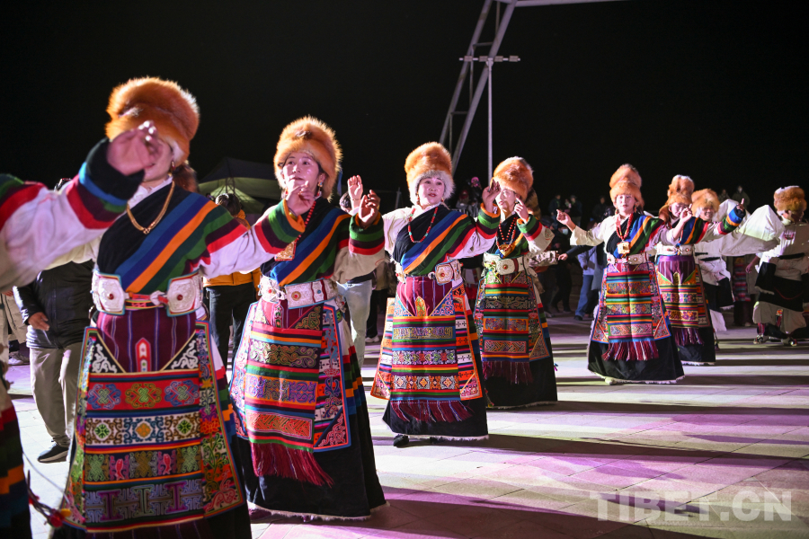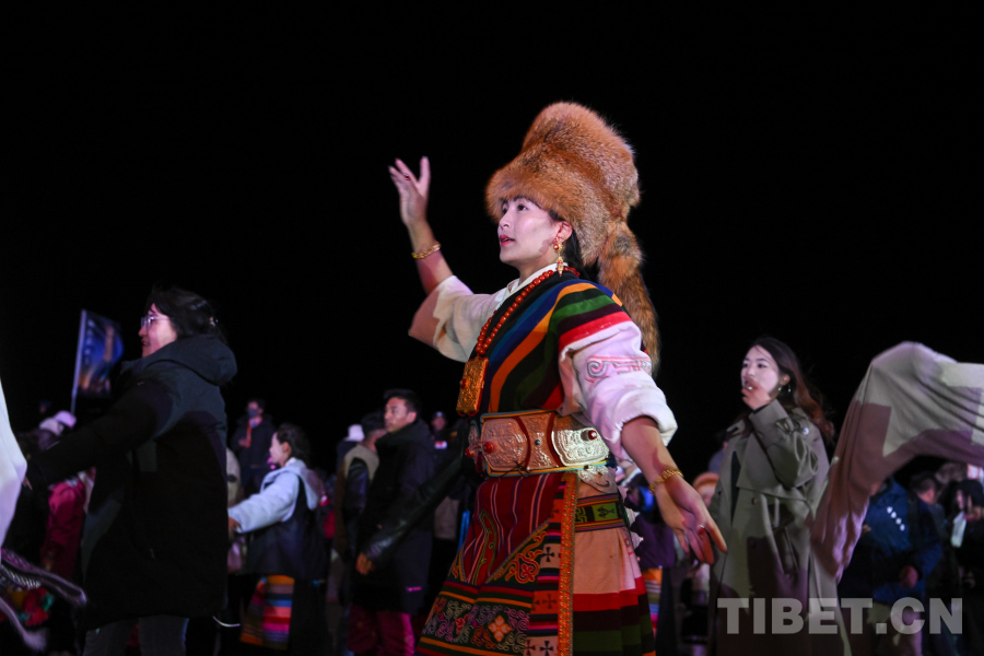 中國西藏網(wǎng)訊 5月18日晚,“情定當(dāng)雄”篝火鍋莊晚會在西藏拉薩市當(dāng)雄縣賽馬場舉行。晚會現(xiàn)場,以燃燒的篝火為中心,當(dāng)?shù)孛癖娚碇?jié)日盛裝跳起歡快的鍋莊舞。熱情奔放的旋律,洋溢著濃郁的民族風(fēng)情,讓來客們沉浸式體驗(yàn)鍋莊,感受原生態(tài)淳樸的歌舞表演。(中國西藏網(wǎng) 記者/旦曲)