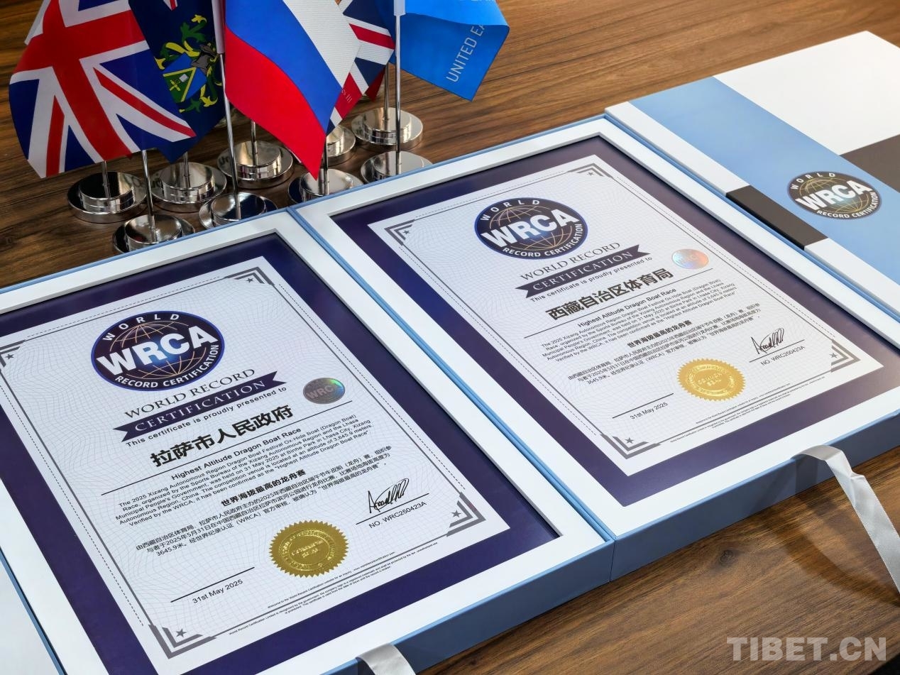 圖為“世界海拔最高的龍舟賽”世界紀(jì)錄認(rèn)證書 西藏自治區(qū)體育局提供