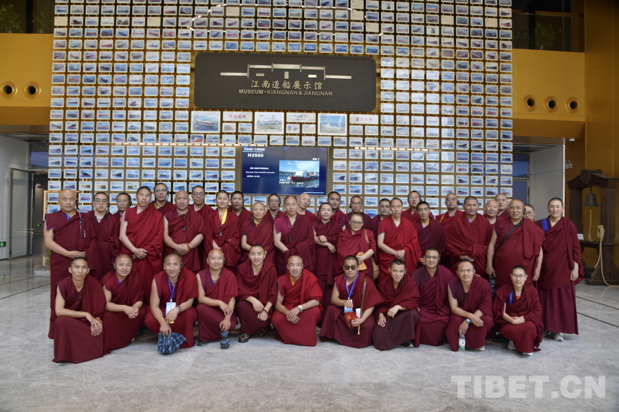 圖為西藏佛學院師生在上海江南造船廠合影,了解“中國第一船廠”到“航母搖籃”的發(fā)展歷史 攝影:趙振宇