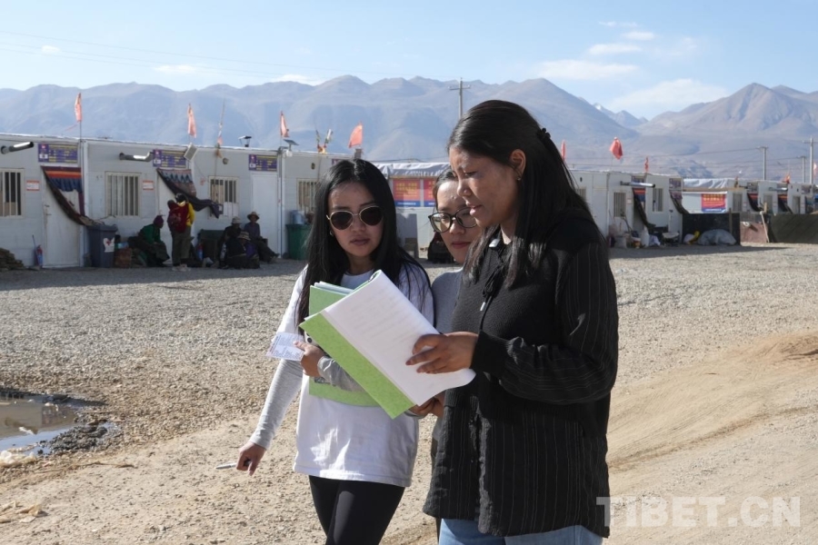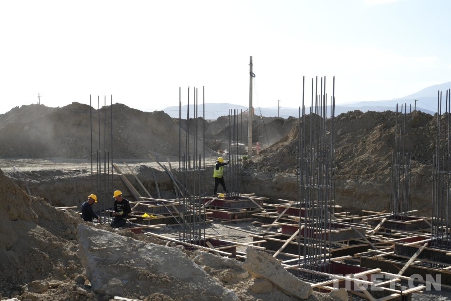 在雜村,一座座安置板房間,婦女們圍坐一起編織氆氌,孩子們玩鬧嬉戲,時有工作人員入戶進行安全排查、普法宣傳,生活一如往常平靜安寧。而在距離安置點不遠處的工地上,卻呈現(xiàn)出一片繁忙的景象——運輸車穿梭其間,機器轟鳴,工人忙著將箍筋固定在地基中,雜村重建工作正有序而迅速地推進著。