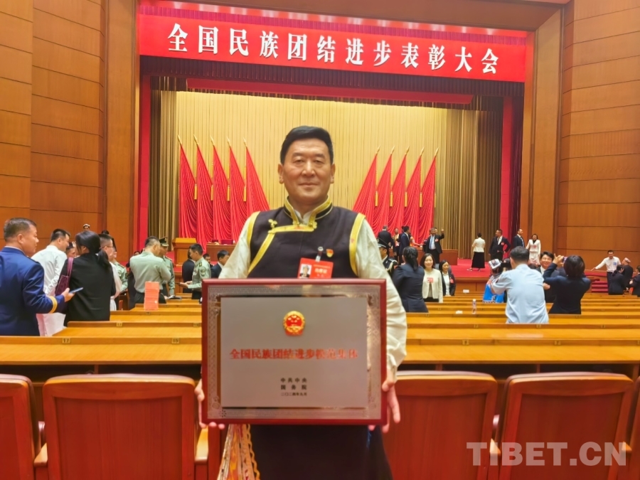 圖為邊巴在全國民族團(tuán)結(jié)進(jìn)步表彰大會現(xiàn)場 受訪者供圖