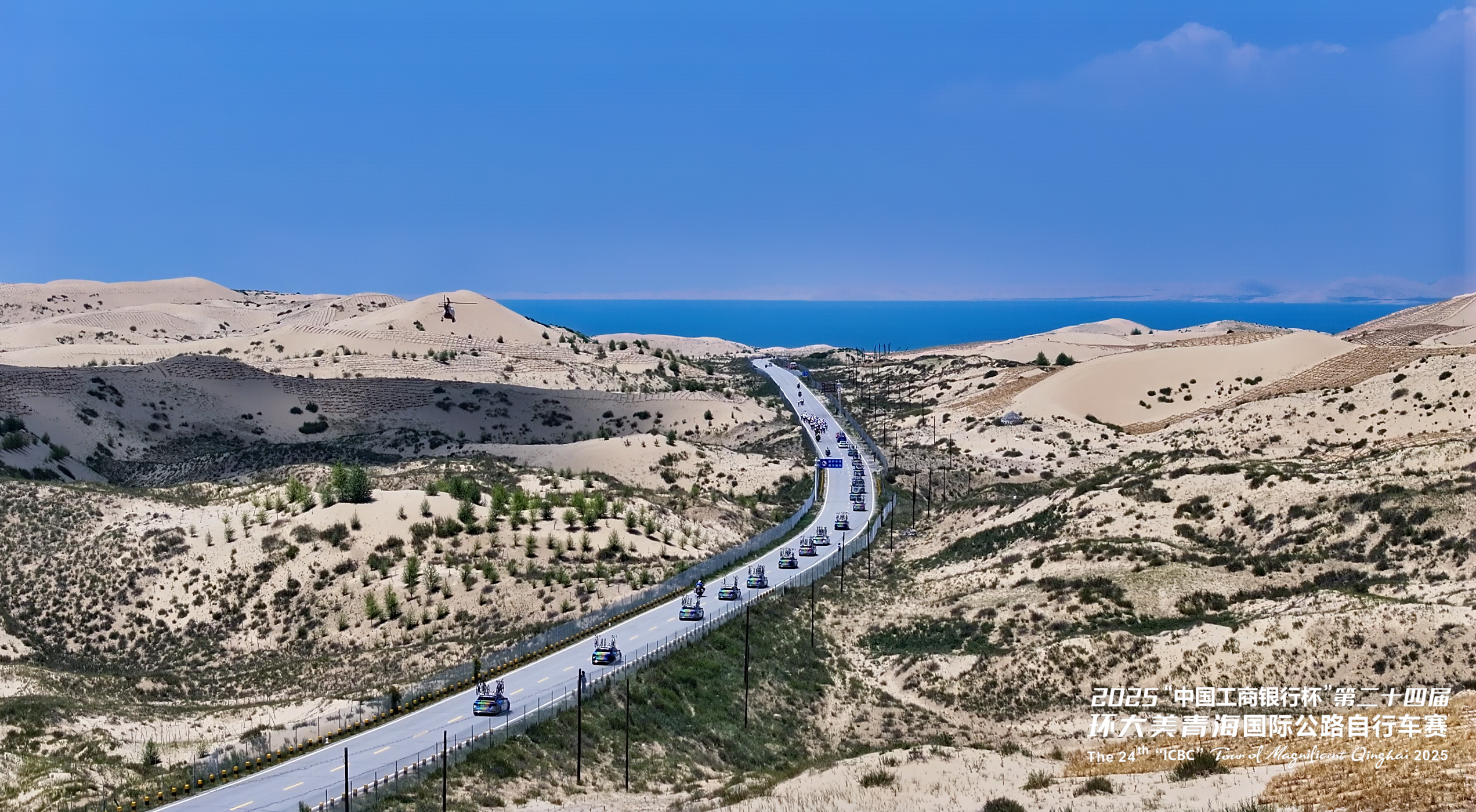 第二十四屆環(huán)青賽第六賽段——?jiǎng)偛?共和賽段,是本屆賽事距離最長(zhǎng)的賽段。車(chē)隊(duì)出發(fā)后不久便駛?cè)胫沫h(huán)湖公路,這段標(biāo)志性賽程承載著環(huán)青海湖賽事的精髓和回憶。作為環(huán)青賽的前身,環(huán)湖賽段以其獨(dú)特魅力吸引著全球騎行愛(ài)好者,人們沿著賽事路線打卡騎行,盡情領(lǐng)略青海湖畔的壯美風(fēng)光。