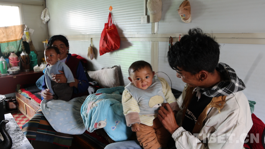 午休時分,喧囂暫歇。旦增點旦匆匆趕回臨時板房。孩子們正由祖父母照料著。門一開,兩張稚嫩的小臉立刻點亮了夫妻倆的笑容。旦增點旦熟練地抱起小兒子,指尖輕柔地更換尿不濕;次仁卓嘎則麻利地舀奶粉、沖溫水、搖勻奶瓶,遞給兒子,輕聲叮囑:“慢點喝?!薄—M小的板房里,兩人一邊照顧孩子,一邊低聲交流著工地的瑣事和對未來的憧憬。待孩子安穩(wěn),他們才端起早已備好的午飯,囫圇幾口,又匆匆奔向工地。