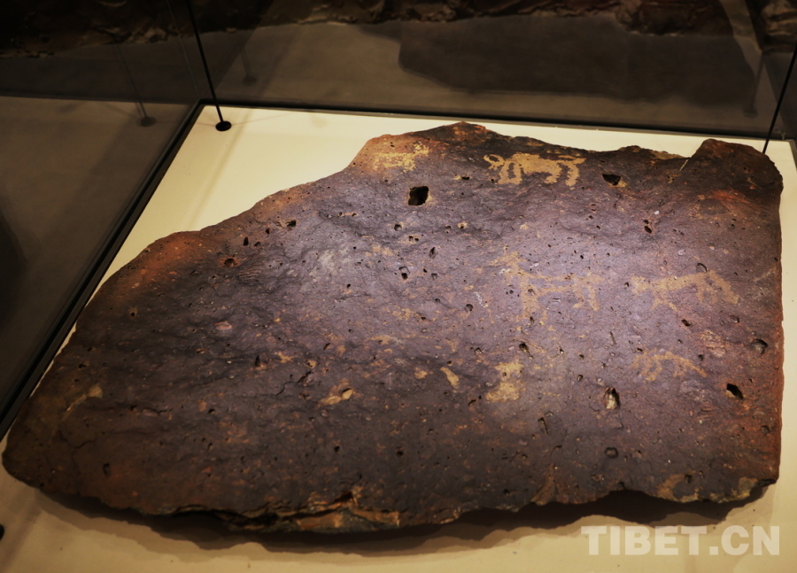 圖為西藏牦牛博物館收藏的2件國家一級文物日土牦牛巖畫之一。該藏品由西藏自治區(qū)阿里地區(qū)日土縣牧民次仁平措先生捐贈 攝影:劉莉