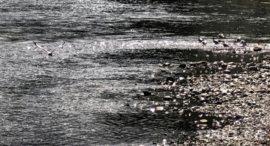 圖為拉薩兩島內(nèi)河綠色生態(tài)廊道一隅,成群的水鳥在河邊棲息 攝影:劉莉
