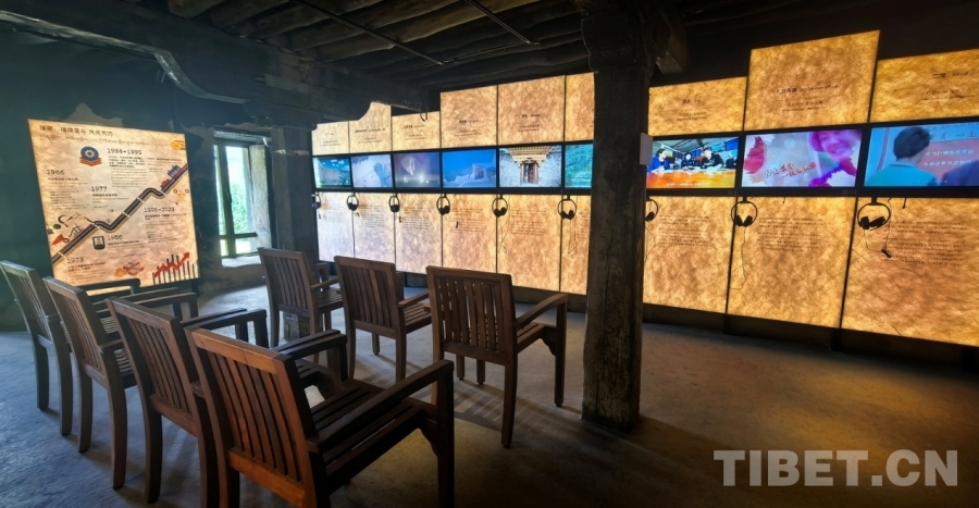 圖為強(qiáng)吉莊園公共文化活動中心二層通過影音設(shè)備講述新時代為建設(shè)社會主義現(xiàn)代化新西藏做出杰出貢獻(xiàn)的人們的故事 攝影:劉莉