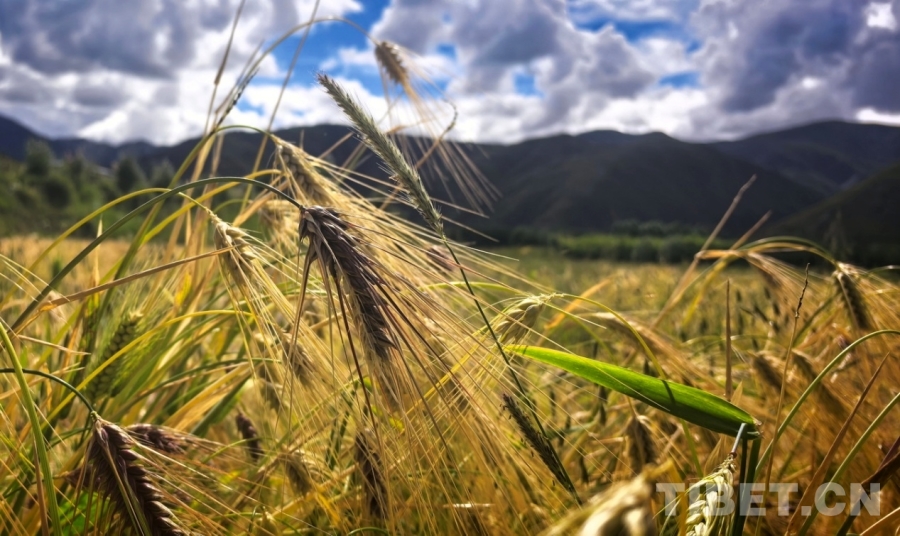 圖為強(qiáng)吉村壓彎了枝條的青稞穗 攝影:劉莉