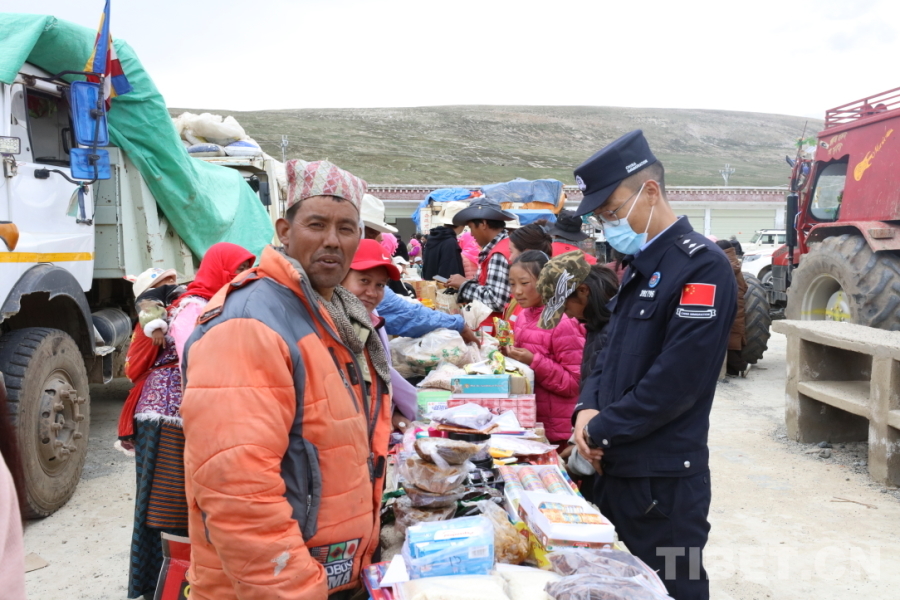 圖為移民管理警察在拉孜拉邊貿(mào)交易現(xiàn)場(chǎng)執(zhí)勤
