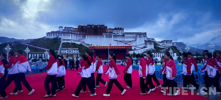 圖為拉薩市北京中學(xué)師生入場 攝影:劉莉