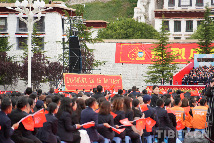 中國西藏網(wǎng)訊 西藏自治區(qū)成立60周年慶祝大會(huì)于8月21日上午10時(shí)在拉薩隆重舉行。伴隨著歡快的音樂,熱烈歡騰的群眾游行在“旗幟引領(lǐng)”彩車的帶領(lǐng)下正式開始。(中國西藏網(wǎng) 記者/王淑 馮重霖 劉莉 趙釗 姚浩然 楊眉笑 德吉卓瑪 趙振宇 賈華加 邊子捷 次旦拉姆 旦曲)