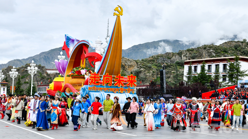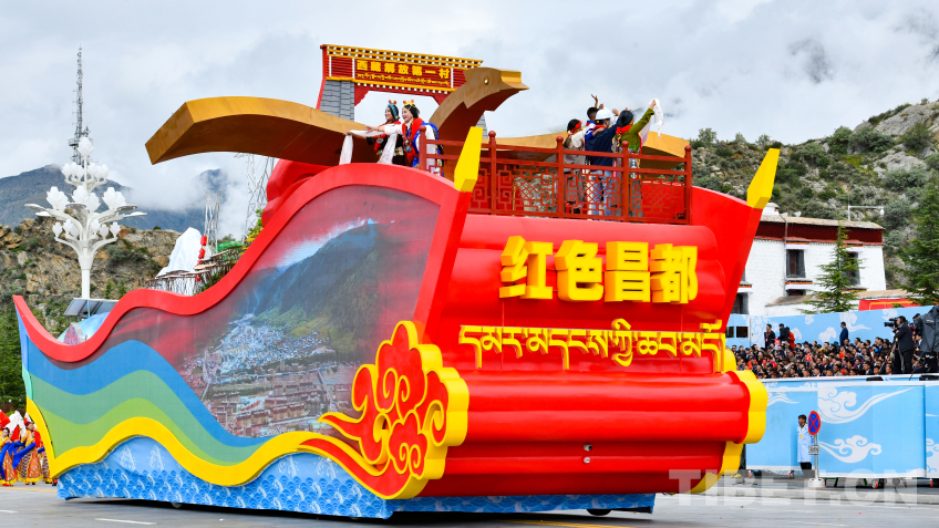 “走向未來”彩車,整體呈現(xiàn)數(shù)字“60”字樣,車身造型融入華表、紅色飄帶、中國結(jié)等元素,彰顯了西藏各族干部群眾奮進(jìn)新征程、建設(shè)團(tuán)結(jié)富裕文明和諧美麗的社會主義現(xiàn)代化新西藏的信心和決心。(中國西藏網(wǎng) 記者/王淑 趙振宇 德吉卓瑪 次旦拉姆 旦曲 賈華加 趙釗 姚浩然 劉莉 邊子捷 馮重霖 楊眉笑)