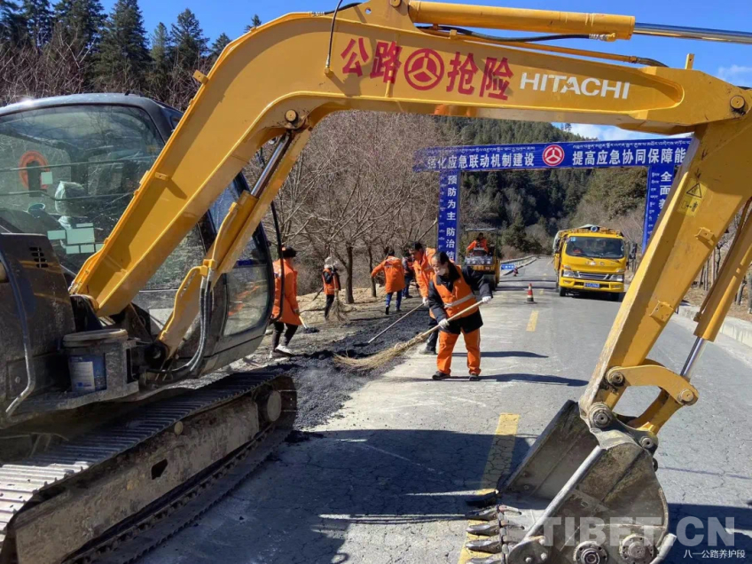 圖為西藏公路養(yǎng)護(hù)工人作業(yè)現(xiàn)場(chǎng) 受訪者供圖