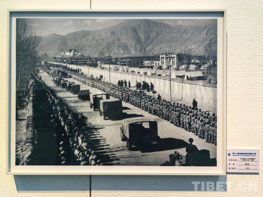 圖為第十七屆西藏珠穆朗瑪攝影大展所展出的《車(chē)隊(duì)第一次開(kāi)到拉薩》(藍(lán)志貴 1954年12月拍攝)