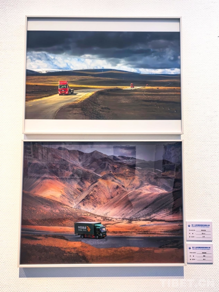 圖為第十七屆西藏珠穆朗瑪攝影大展所展出的《草原征程》(上方 攝影:夏文川)《高原郵路》(下方 攝影:賴(lài)毅)